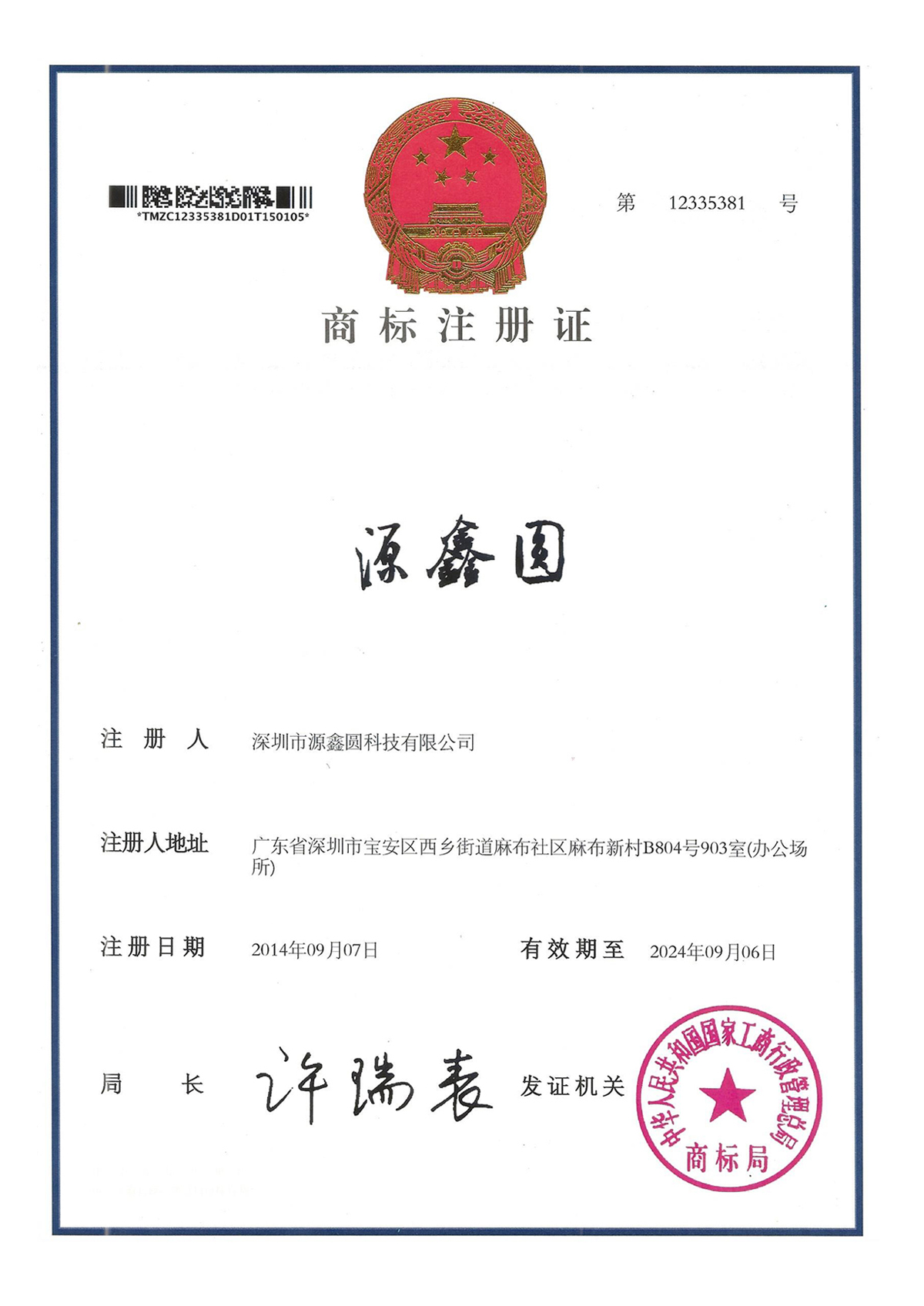 Yuanxinyuan trademark registration